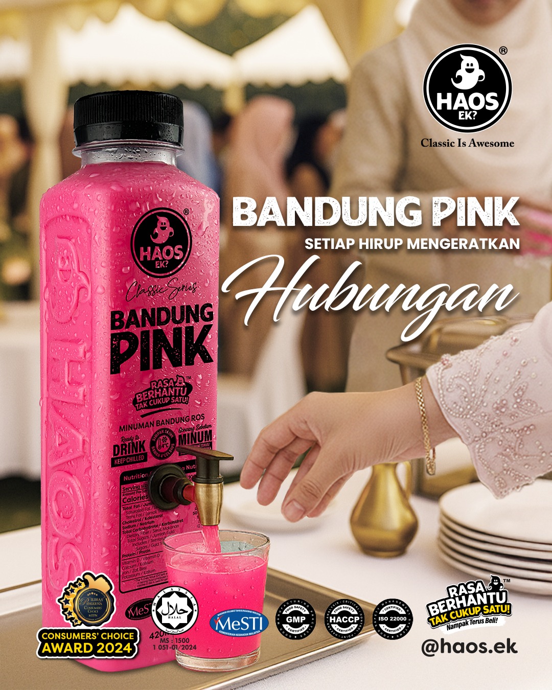 Setiap Hirup Mengeratkan Hubungan. Tak cuba kita tak tahu, bila dah cuba confirm tak cukup satu. Haos Ek? Bandung Pink bukan hanya minuman, tetapi Penambah Seri untuk momen-momen istimewa. Rasai keunikan Bandung Pink dengan kombinasi rasa classic dan kesegaran yang memukau. Dekat mana nak dapat Haos