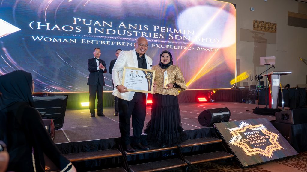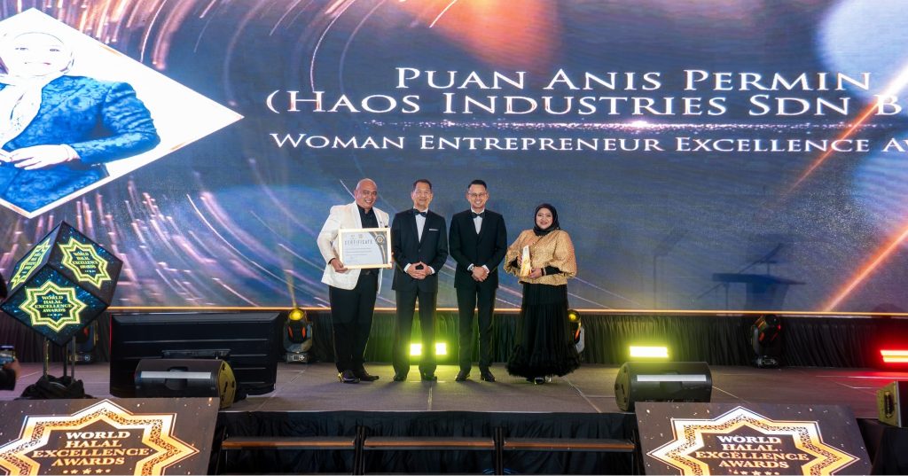 07 Disember 2025 – Puan Anis Permin sebagai CEO Haos Ek? telah diberi penghormatan besar apabila dinobatkan sebagai penerima Woman Entrepreneur Award dalam World Halal Excellence Awards (WHEA) 2024, sebuah platform berprestij yang meraikan pencapaian luar biasa individu dan organisasi dalam ekosistem halal, sama ada di peringkat domestik mahupun antarabangsa.